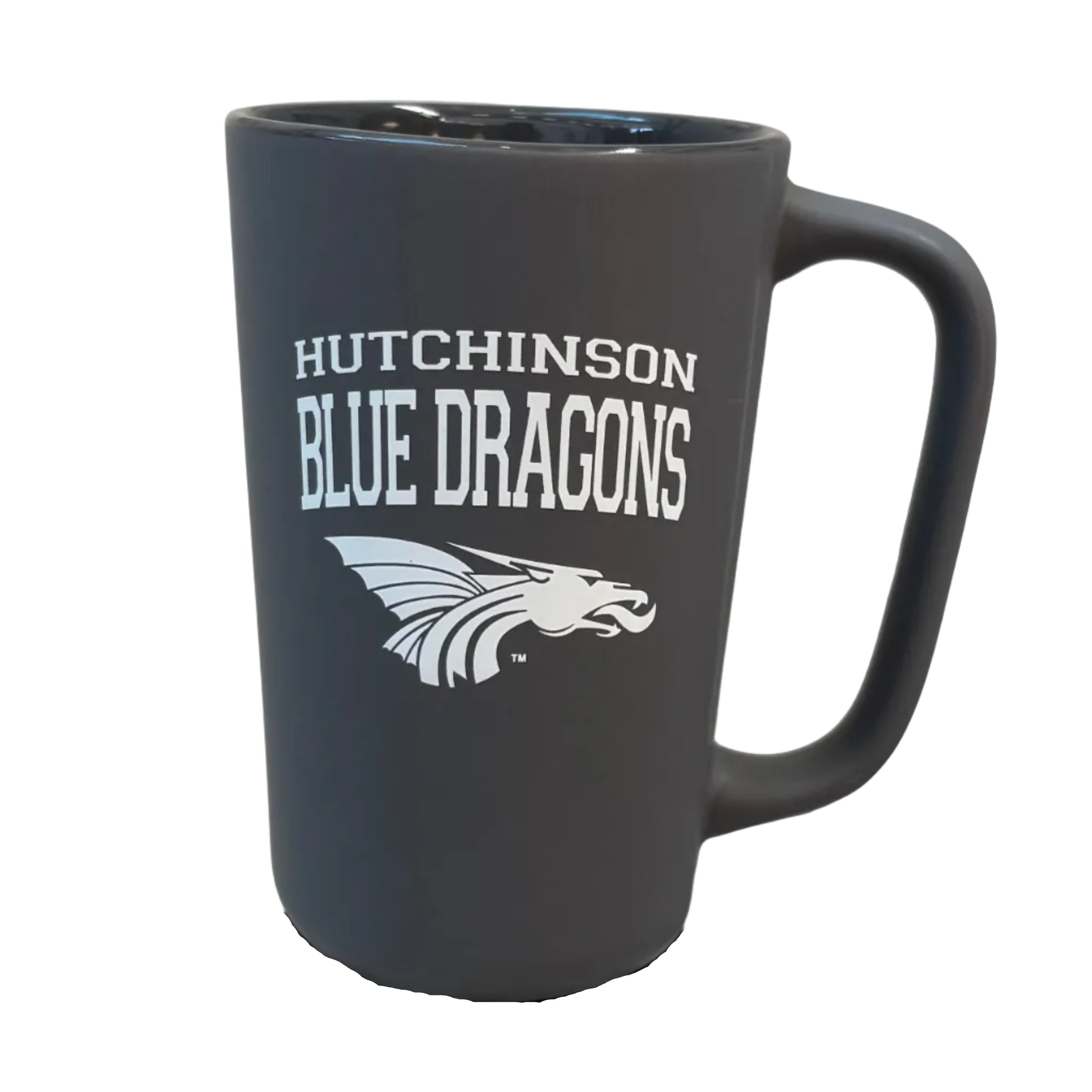 Gray mug that reads, "HUTCHINSON BLUE DRAGONS" above a white power dragon.