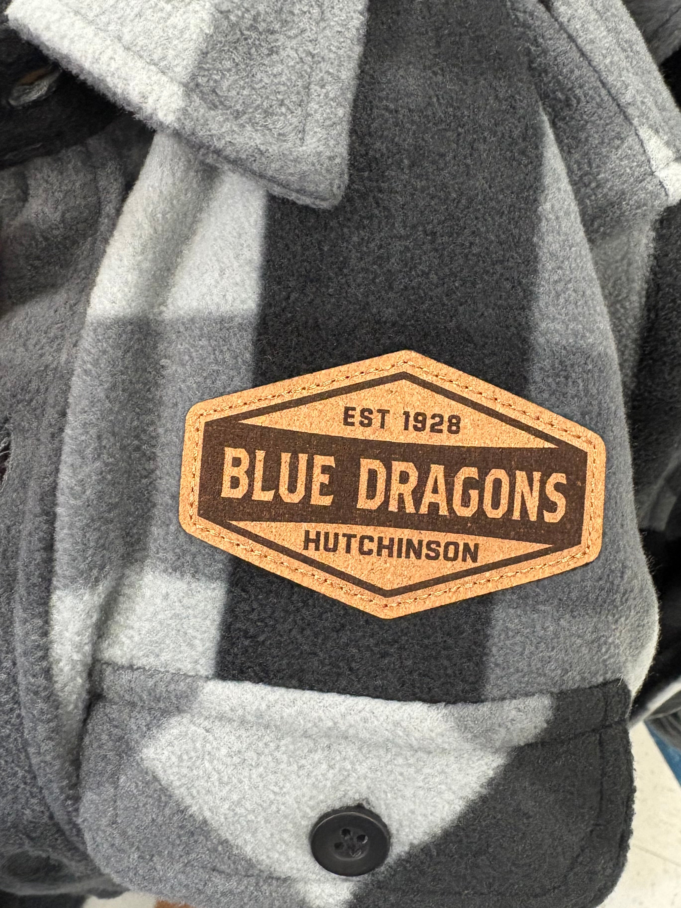 Black and gray women's flannel with appliqued pleather patch. Very soft and warm.